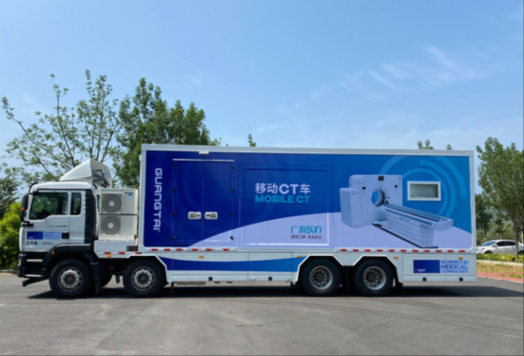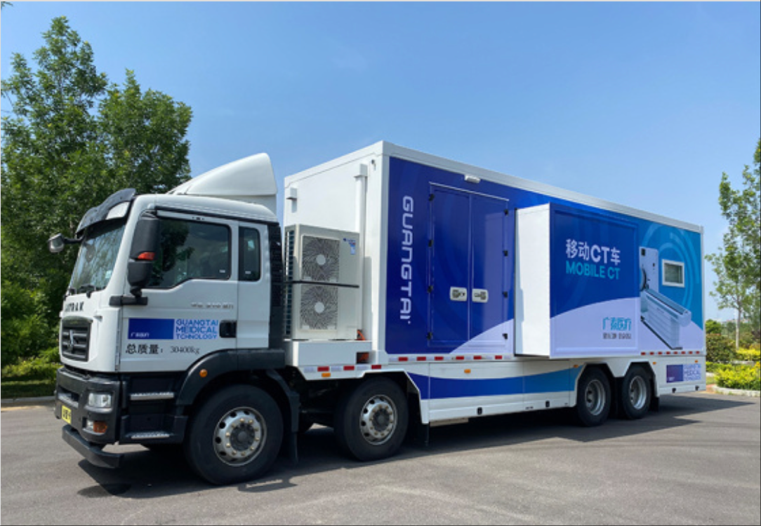 移动 CT 单元是将科室的 CT 移动到车上,可用于全身各系统疾病的影像诊断,同时根据不同医疗设备可以组合不同的医疗单元模块,满足不同场景下的医学需求。